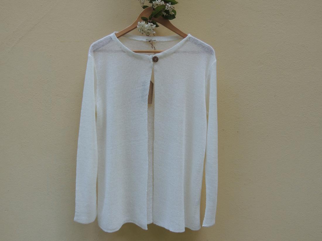 Leggero cardigan donna a manica lunga ,realizzato artiginalmente in 100% lino biologico certificato,color bianco.